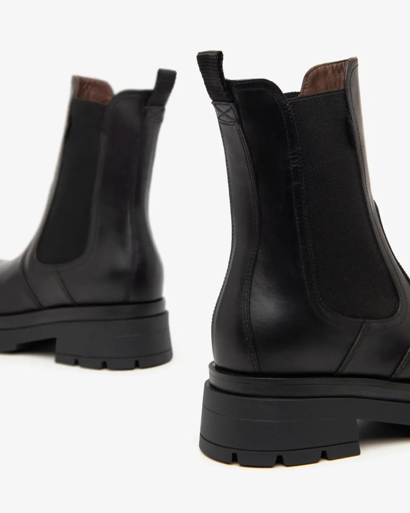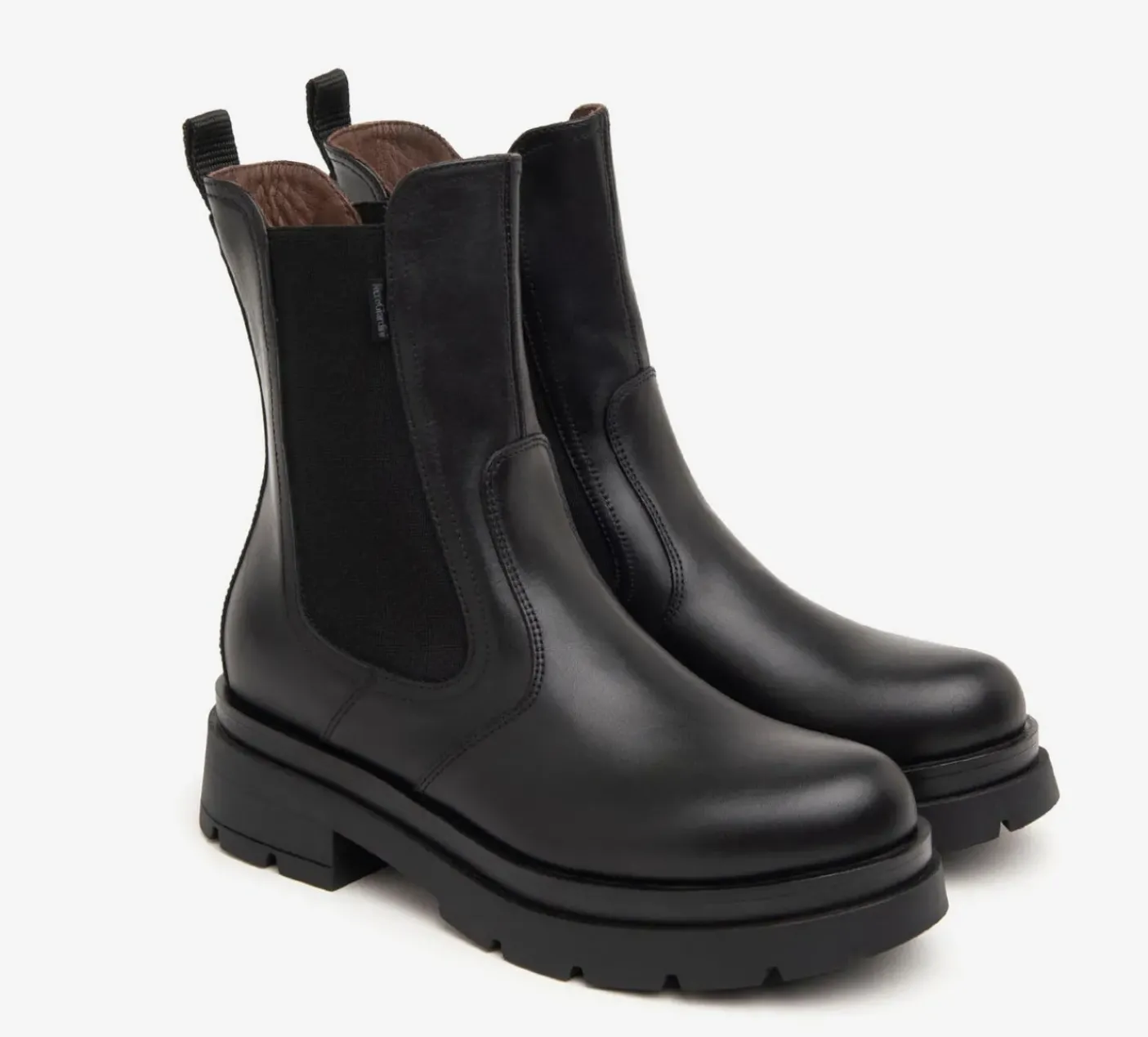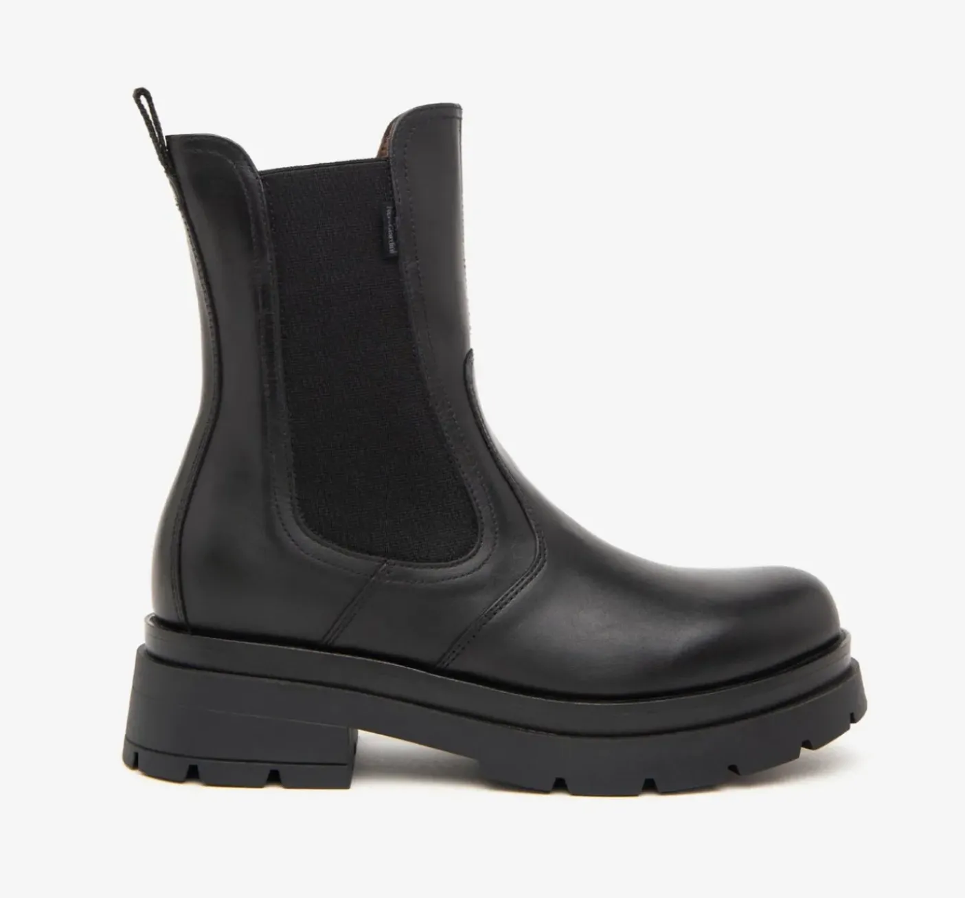 Tronchetti chelsea in vera pelle con elastico laterale. Rivestito internamente in pelle. Fondo gomma carrarmato tacco 5cm.