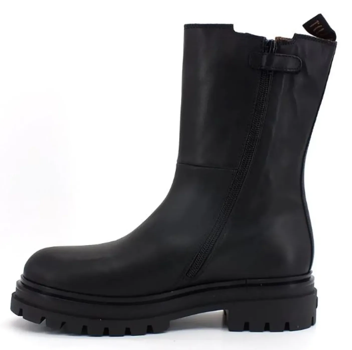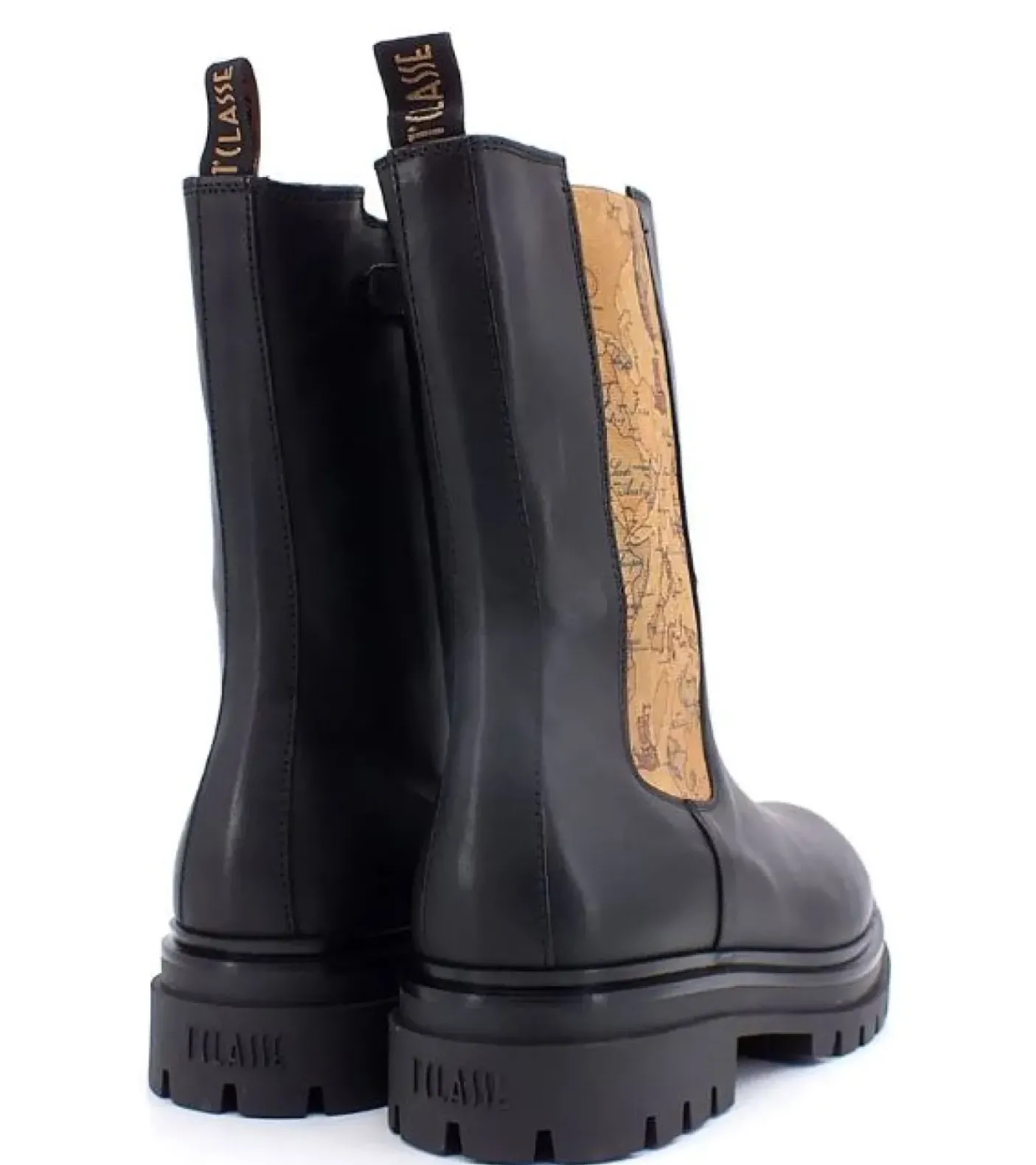 Tronchetto modello beatles in pelle con dettagli geo. Rivestito internamente in pelle. Chiusura con cerniera laterale. Fondo gomma 4cm.