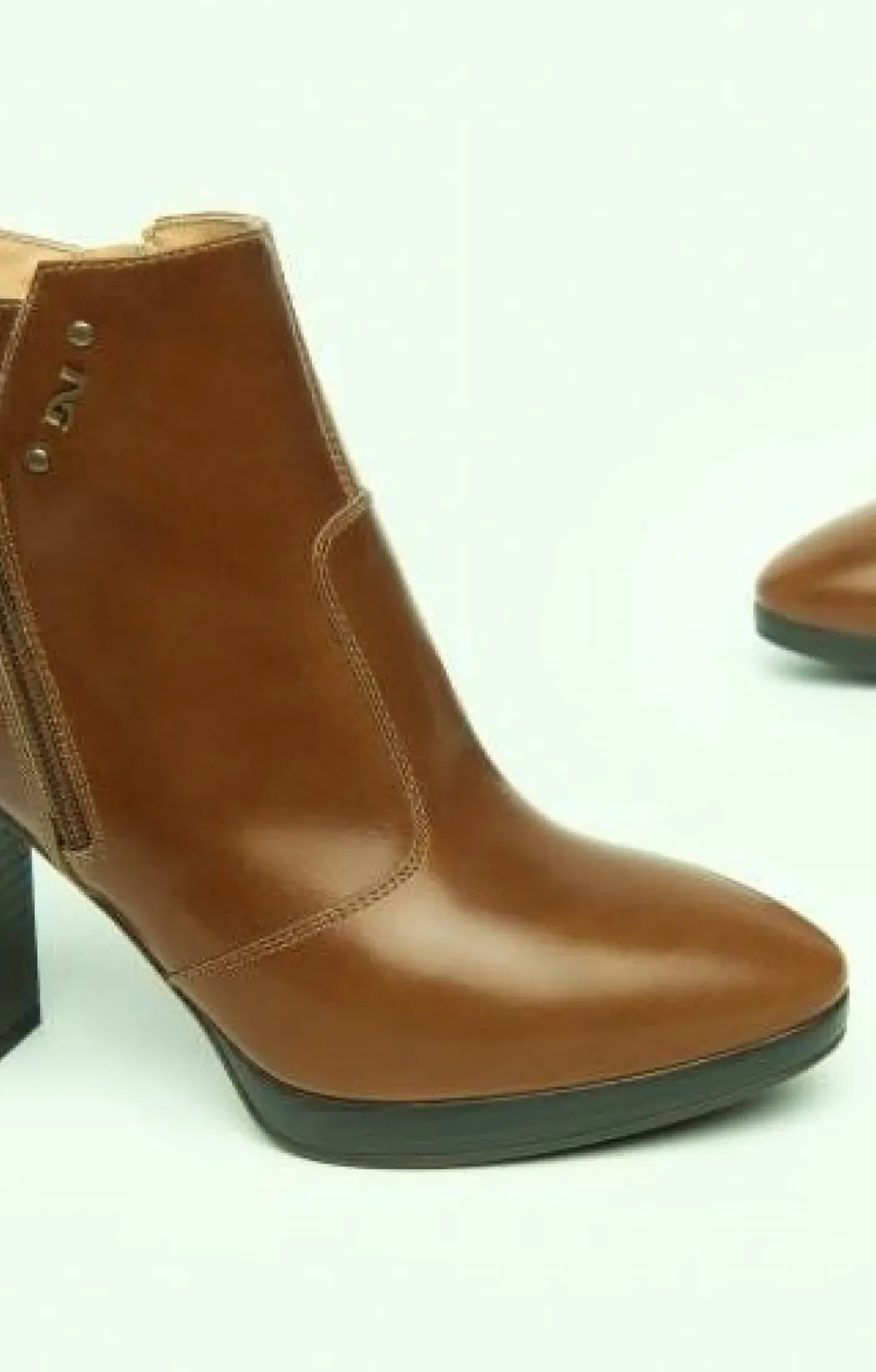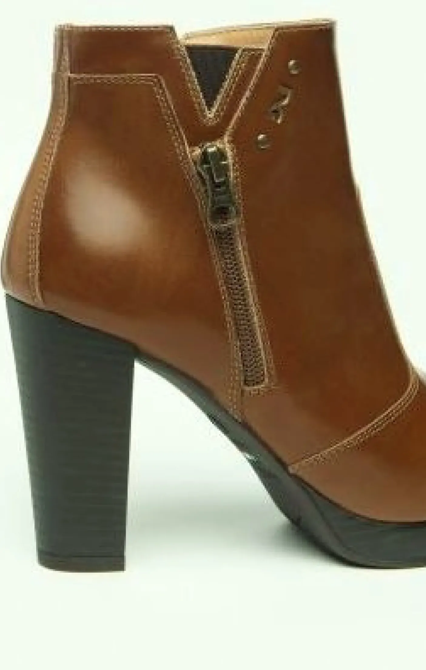 Tronchetti in vera pelle, rivestito internamente in pelle. Mini borchie e logo metallico. Chiusura con zip. Fondo gomma tacco 9.5cm