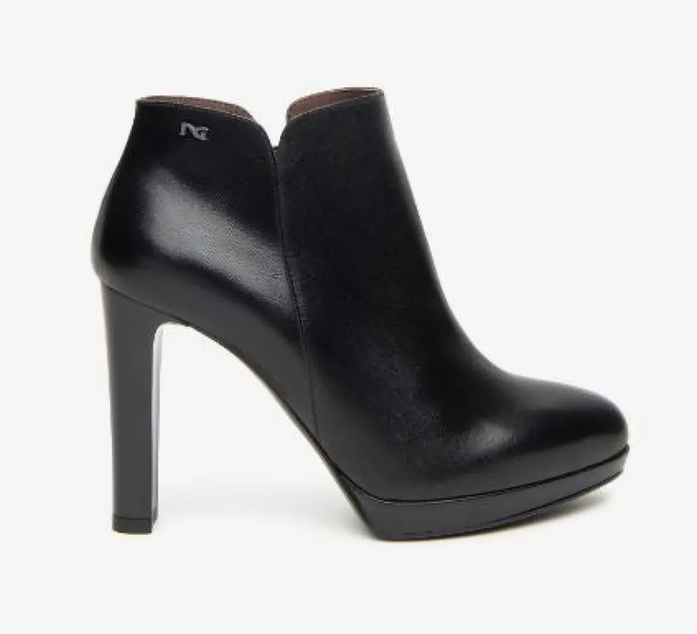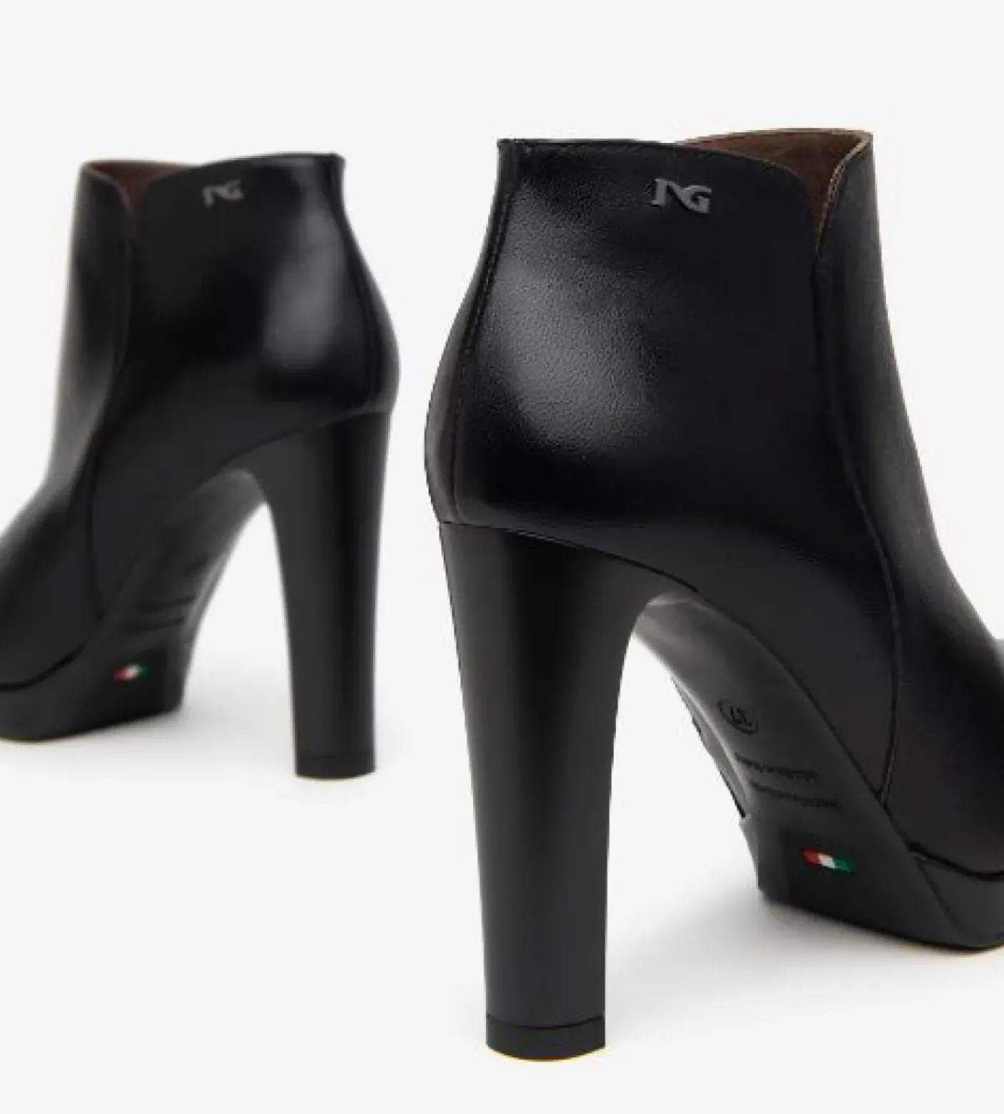 Tronchetto in vera pelle, rivestito internamente in pelle. Chiusura con zip . Tacco 10cm plateau 1,5cm