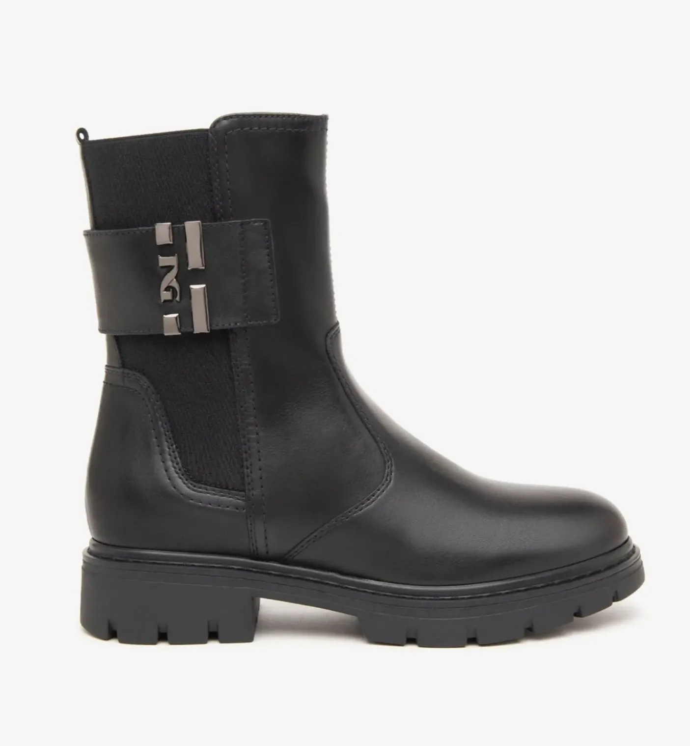 Tronchetti in vera pelle rivestito internamente in pelle. Elastico posteriore e fascia pelle con logo metallico laterale. Soletta in pelle. Chiusura zip. Fondo gomma 3cm.