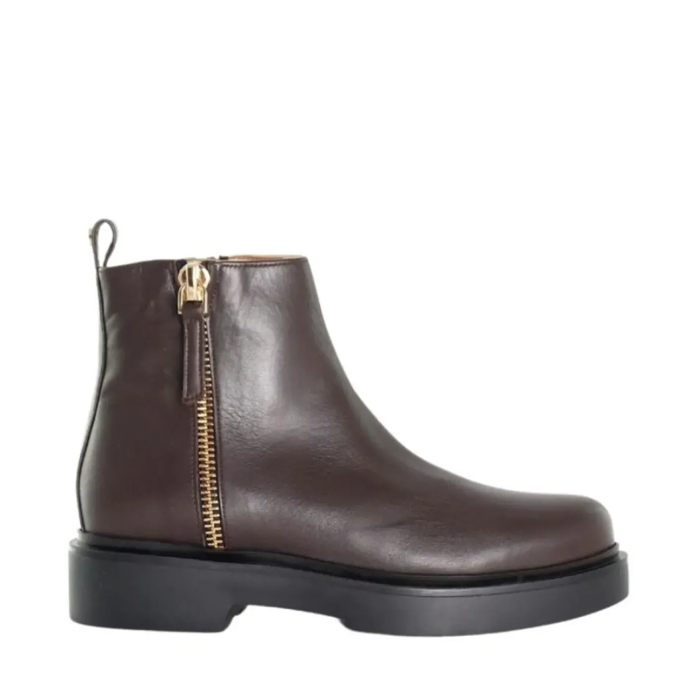 Tronchetti in vera pelle, rivestito internamente in pelle. Chiusura zip laterale. Dettagli zip decorativa. Fondo gomma 4cm