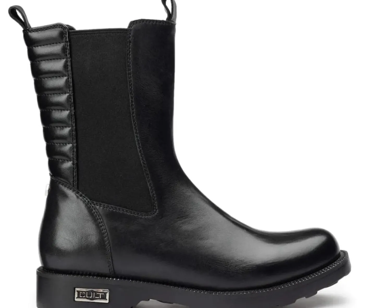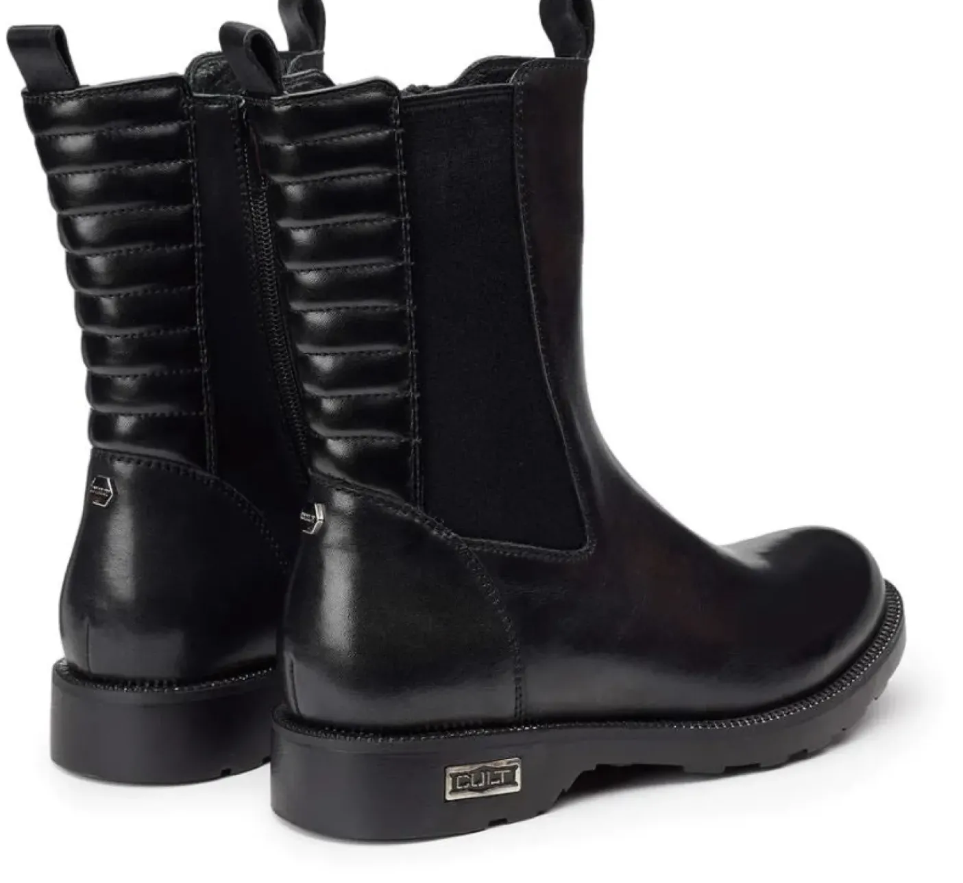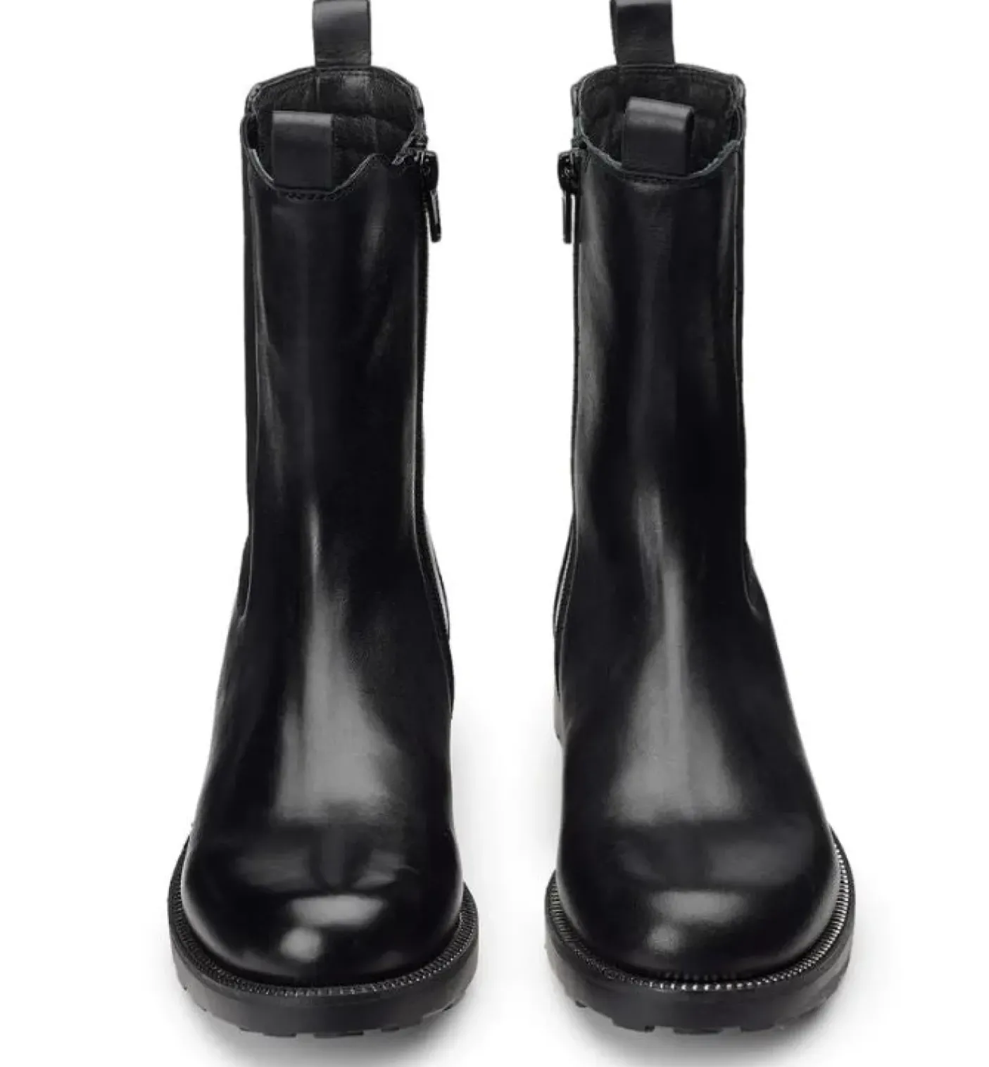 Tronchetto in pelle con elastico laterale e gambale trapuntato posteriormente. Chiusura con zip laterale. Fondo gomma 4cm