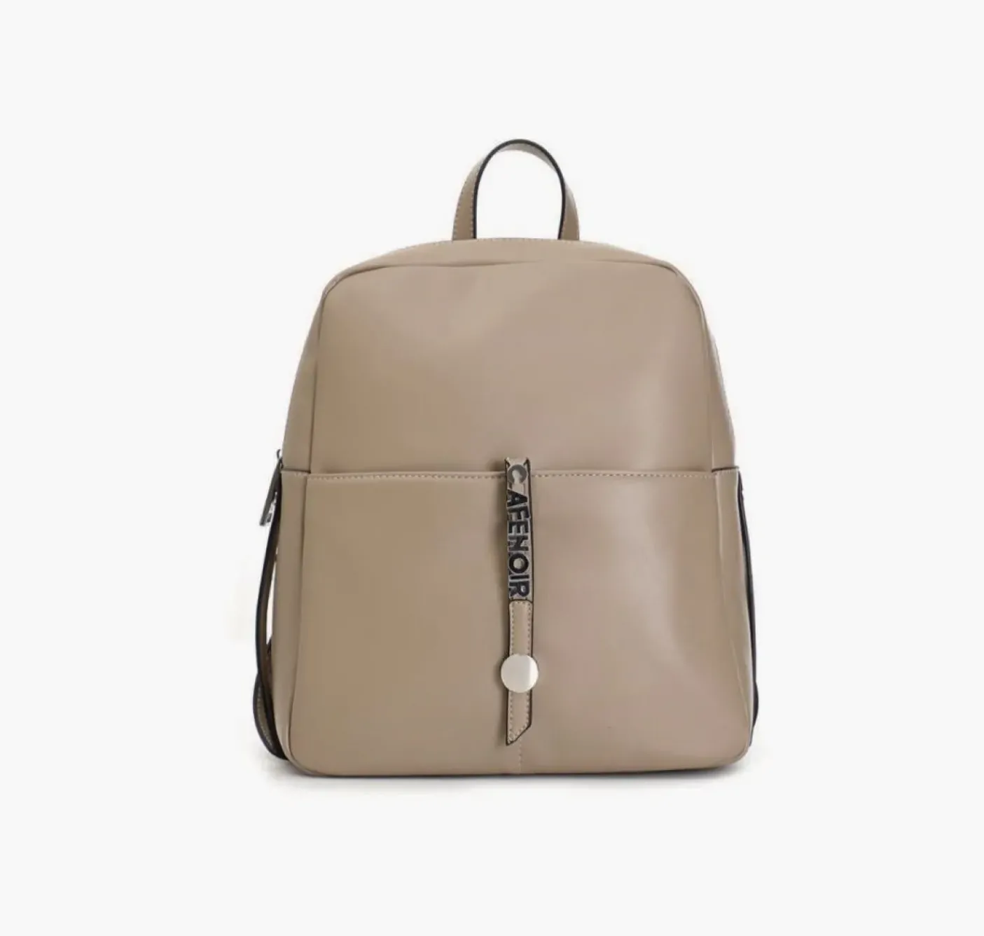 Zaino in ecopelle con tasca frontale. Logo lettering metallico. Rivestito internamente in tessuto logato. Tasca interna con zip. Tracolle regolabili. Chiusura zip.